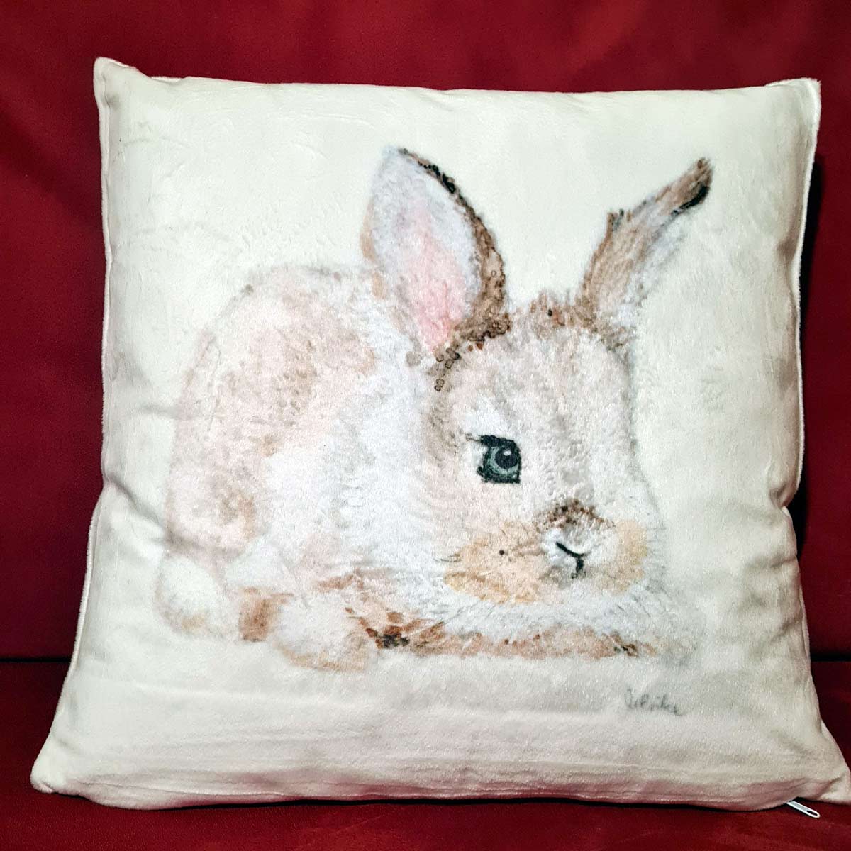 bedruckt mit einem niedlichen Kaninchen “Archibald”. Archibald ist in Aquarelltechnik handgemalt von Ulrike.