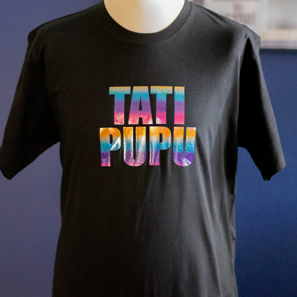 vorne: Motiv “Tati Pupu” in Regenbogen-Glitzer-Optik